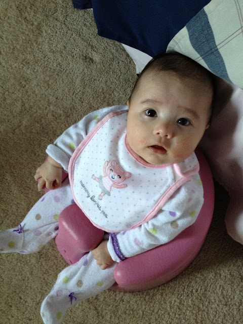 嬰兒坐在Bumbo Chair裡頭感覺好矮, 好像小寵物喔...